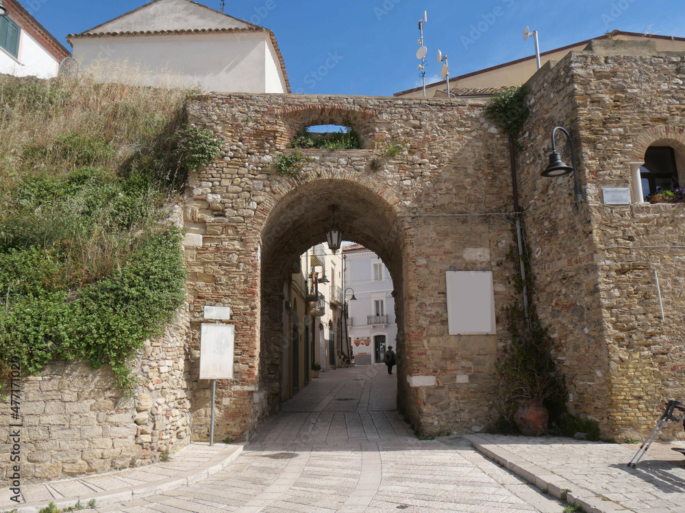 the entrance arch into the old city through the city walls of the Swabian Castle in Termoli