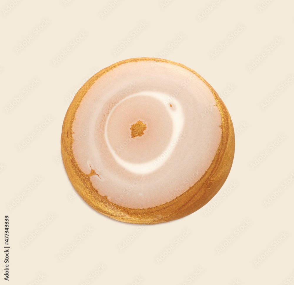 Art gold and white Watercolor and Acrylic circle blot on beige background. Abstract texture color painting stain.