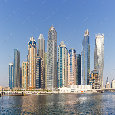 Dubai Marina and Harbour skyline architecture wealth luxury travel in United Arab Emirates square