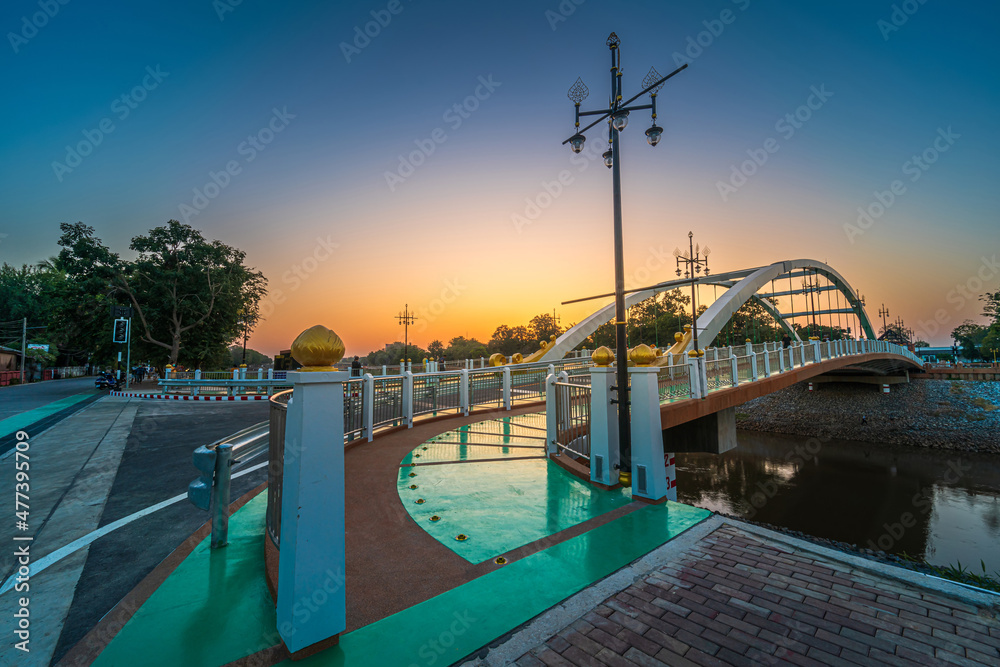 Chan Palace Bridge over the Nan River (Wat Phra Si Rattana Mahathat also - Chan Palace) blue sky background New Landmark It is a major tourist is Public places attraction Phitsanulok at sky sunset