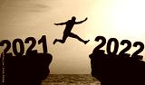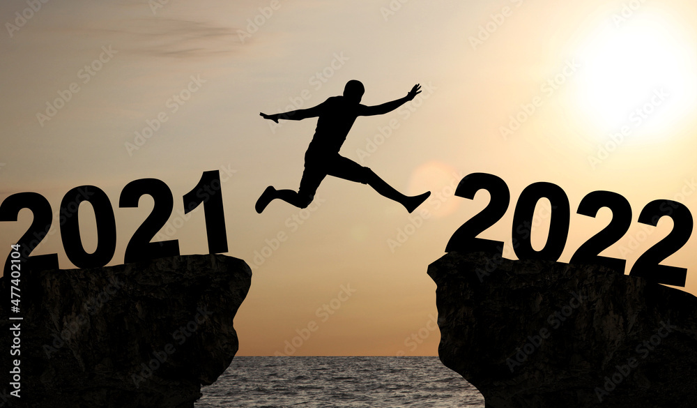 Happy New Year Background. Successful jump to the year 2022.