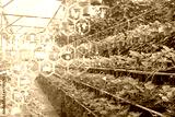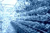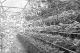 Plants background with biochemistry structure. Natural and science concept with virtual icon at the background.