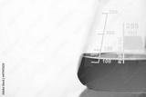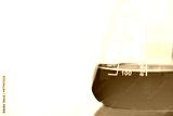 green solution in science glass flask at chemistry laboratory white background.