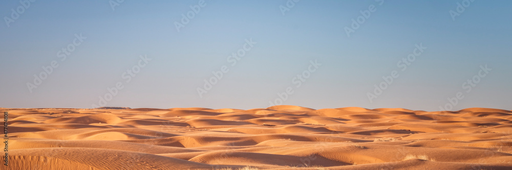 sand dunes field, dusty and windy morning in San Rafael Swell area in Utah (Lower San Rafael Road), panoramic web banner