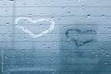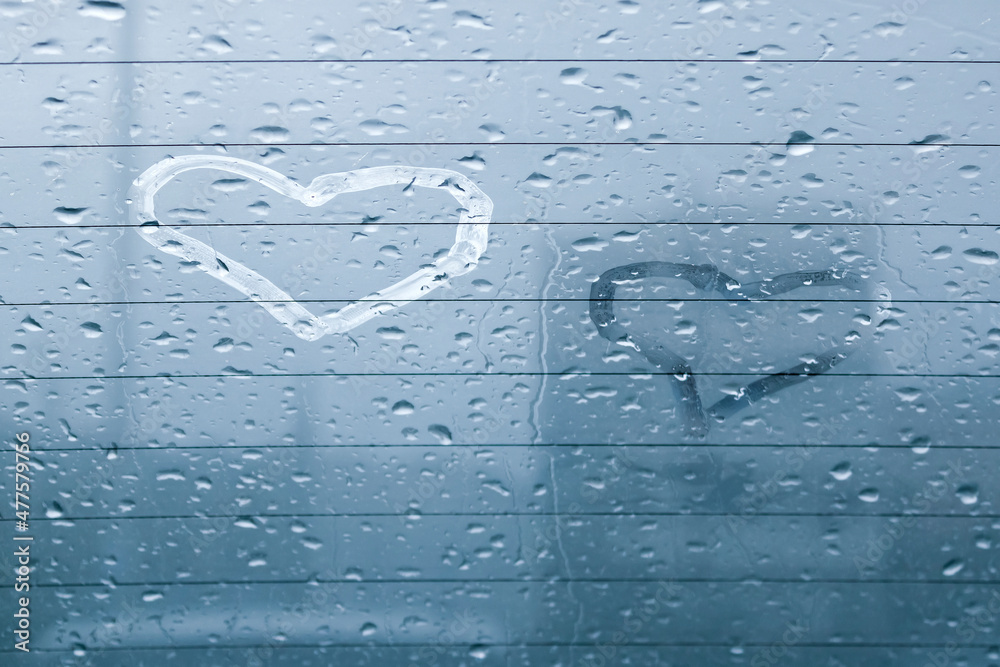 Rear car window with heart drawings