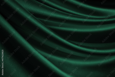 Dark green silk satin velvet. Nice soft folds. Shiny fabric. Wavy lines. Elegant background for design.