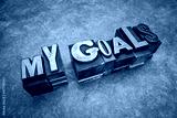 my goals - word abstract in gritty vintage letterpress metal types, mixed fonts against handmade bark paper