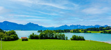 Forggensee - lake near Fuessen in beautiful mountain scenery of Allgaeu Alps, Bavaria, Germany