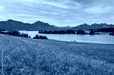 Forggensee - lake near Fuessen in beautiful mountain scenery of Allgaeu Alps, Bavaria, Germany