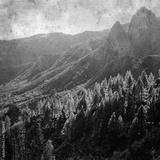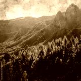 stylish textured old paper square background with landscape of Central Gran Canaria around popular hiking route in Tenteniguada ravine