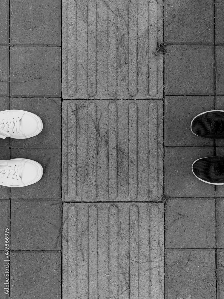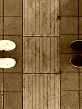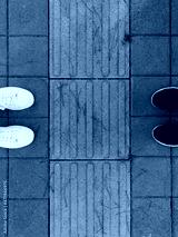 Two pairs of shoes opposite each other
