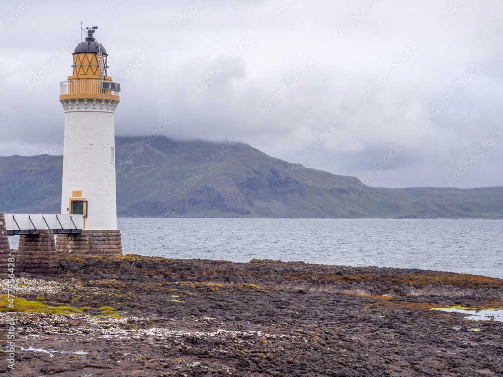 The amazing Tobermory Lighthouse on the edge of the Sound of Mull, Tobermory, Isle of Mull, Scotland, UK