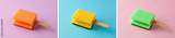 Colorful popsicle ice creams made out of sponge on pastel backgrounds. Household hygiene concept.
