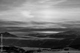 Snowy winter mountain landscape and colorful sky due sunrise over hills Sina, Dumbier and Chopok in Low Tatras mountains at Slovakia