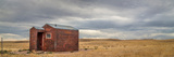 old, metal, rusty shack on a prairie - Soapstone Prairie Natural Area in northern Colorado, panoramic web banner
