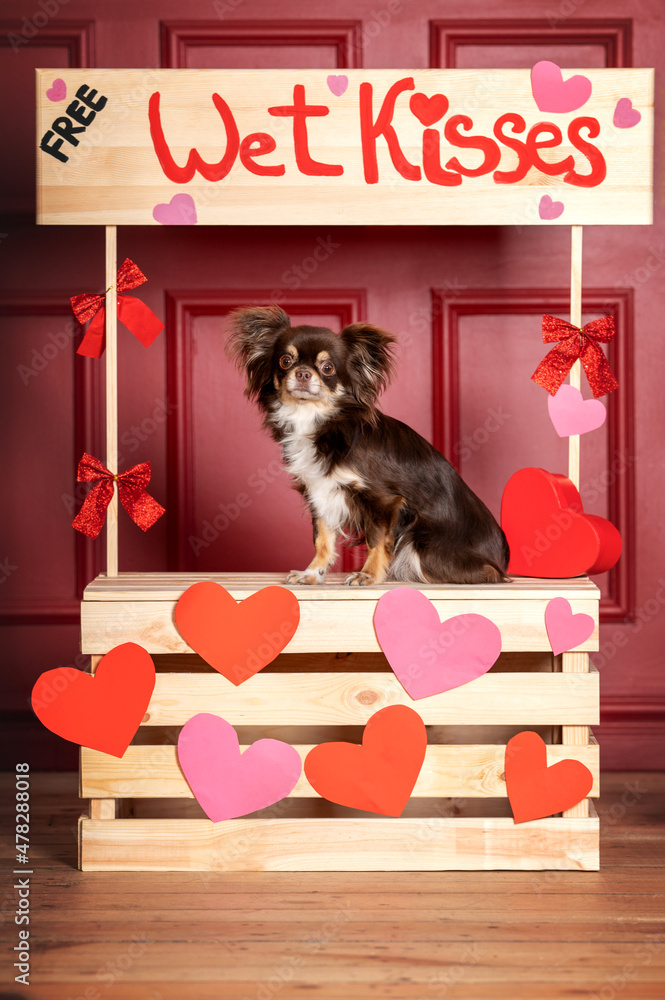 chihuahua dog in a kissing booth