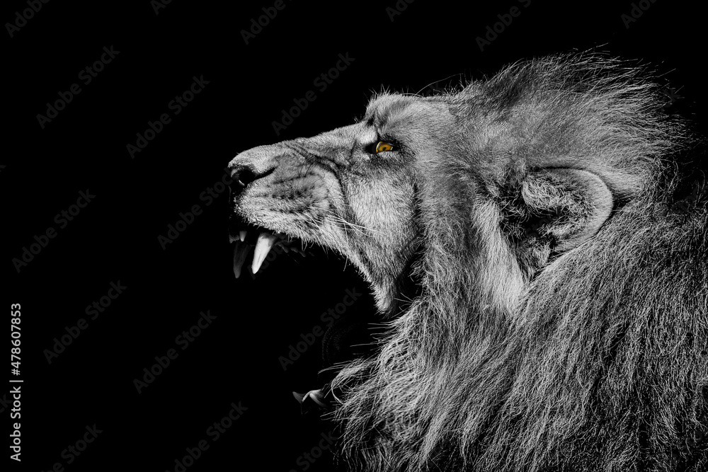 African male lion wildlife animal isolated black white