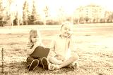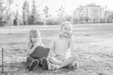 girl with cell phone and brother holding a digital tablet