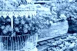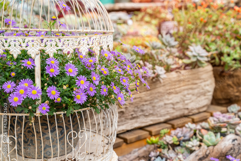 Bird cage with spring blossom of flowers.