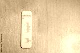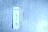 Positive covid-19 auto test with two red lines appearing on the test cassette