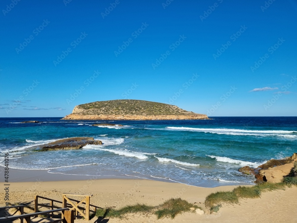 Beach of Cala Compte on a sunny day