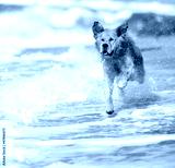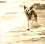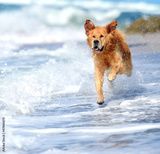 Young golden retriever running on the beach