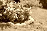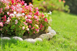 Pretty manicured flower garden with red flowers