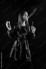 Portrait Of Young Woman smoking cigarette and Drinking Coffee