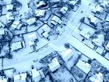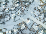 residential street in Fort Collins, Colorado after snowstorm, aerial view