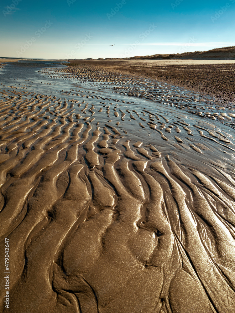 Rippled undulating sand bars on the Sandy Neck Beach on Cape Cod, Massachusetts
