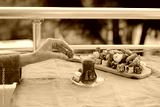 Traditional tea with locum sweets Turkish delight.