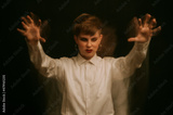 portrait of a psychopathic woman with mental disorders and spiritual diseases on a dark background