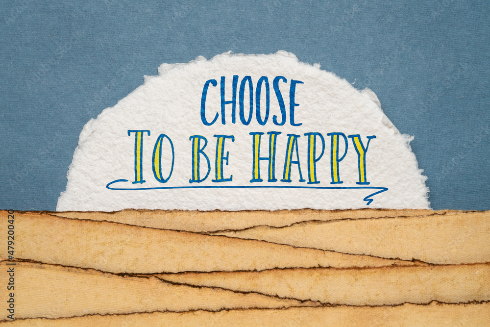 choose to be happy advice or reminder - inspirational handwriting on a watercolor paper against abstract landscape, positive mindset and personal development