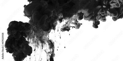 Acrylic colors flow in water. Black and white Abstract horizontal copy space contrast background.