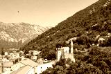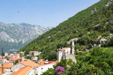 Panoramic view of the city and bay on the sunny day. Perast. Montenegro.