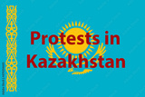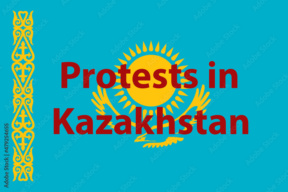 Flag of Kazakhstan with inscription protests in Kazakhstan