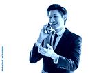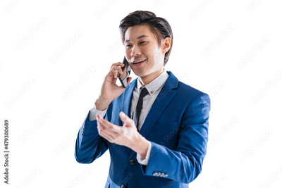 smart attractive asian adult male wear formal suot with tie hand using smartphone communication connecting business deal contract isoalte white background