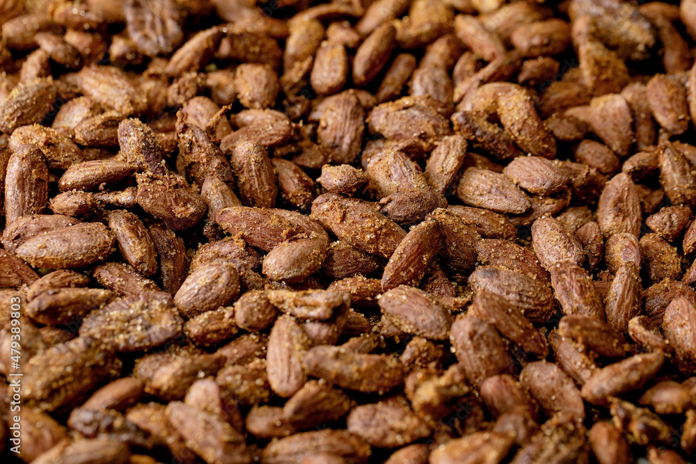 Sweet glazed honey roasted almond nuts. Sweet snack