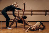 group of little girls at a group training session in a dance studio watch as they learn a new dance with a choreographer