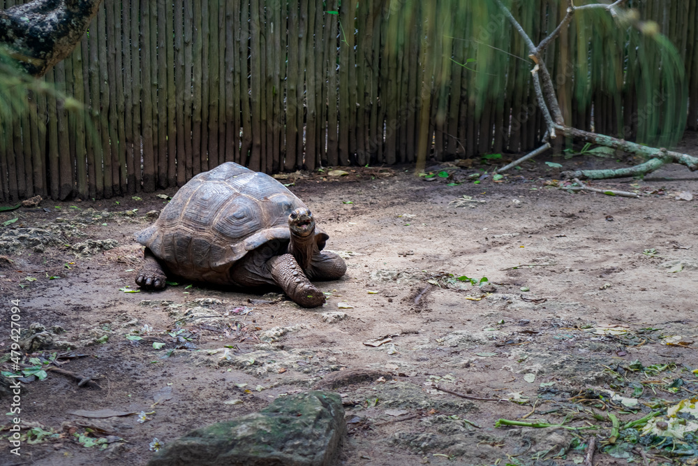 Giant Seychelles turtle in the Park on the island of Prizon, Zanzibar