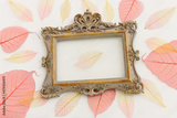 Colorful transparent and delicate skeleton leaves over pastel background