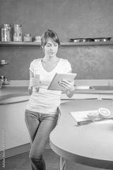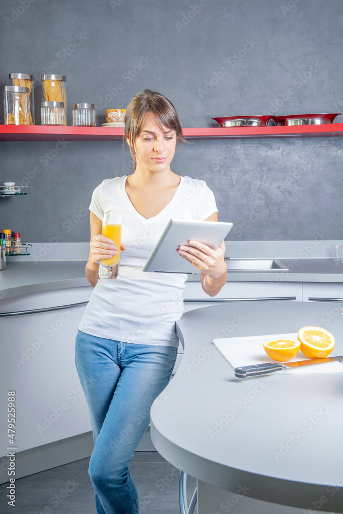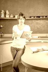 Beautiful young woman with digital tablet relaxing at homeBeautiful young woman with digital tablet relaxing at home