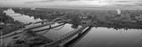 Bridges bridge over Rhine river between Kehl and Strasbourg Germany France aerial photo panorama