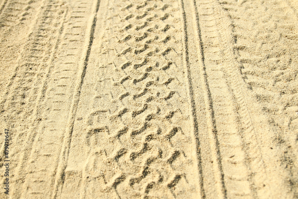 car tire marks in the sand background