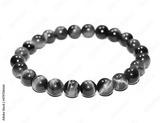 mineral bracelet, jewelry bracelet made of different kinds of round gemstone beads on a white background. tiger eye