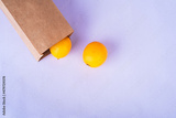 eco package with lemons inside on very peri background. zero waste concept. Copy space, go green, esg. top view