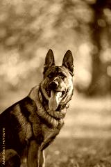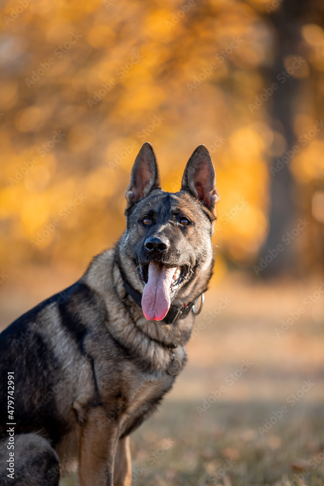 Beautiful dog breed German Shepherd in autumn