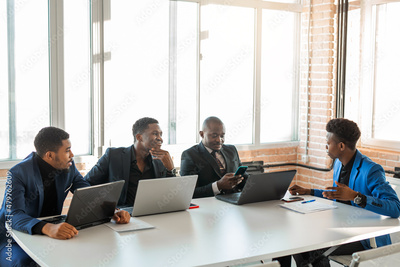 african business people at the table with laptops