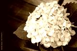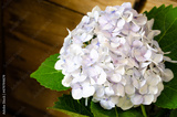 kwiat hortensji na tle drewnianych desek