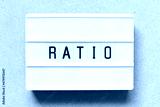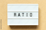 Lightbox with word ratio on wood background